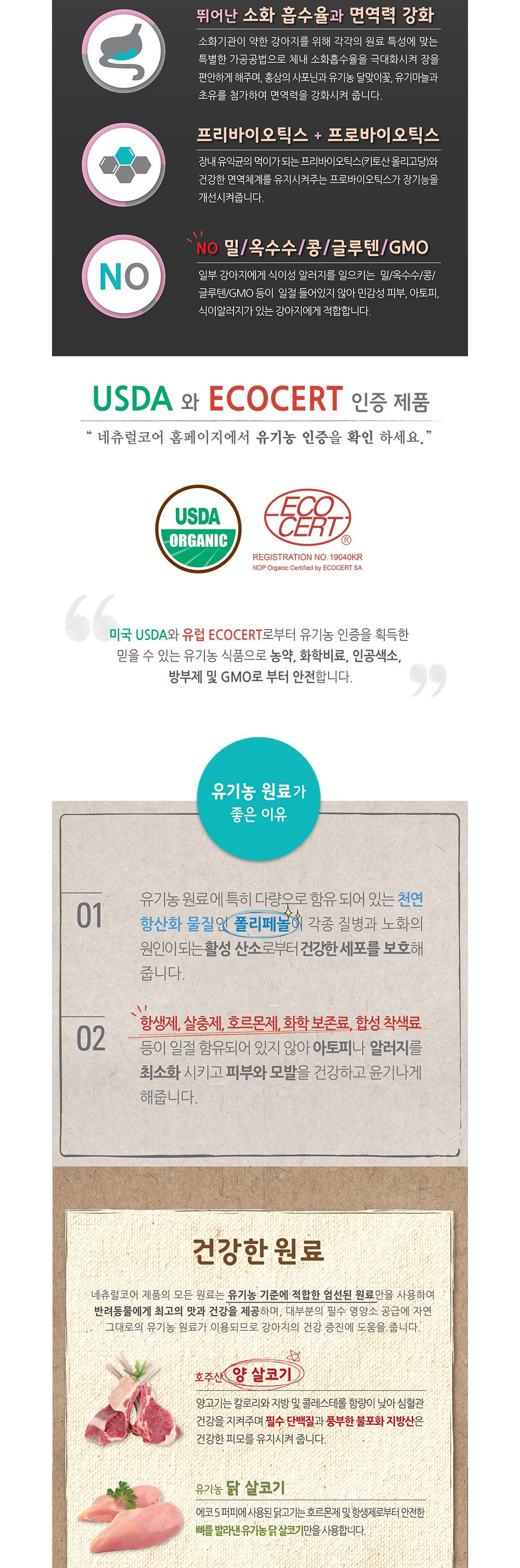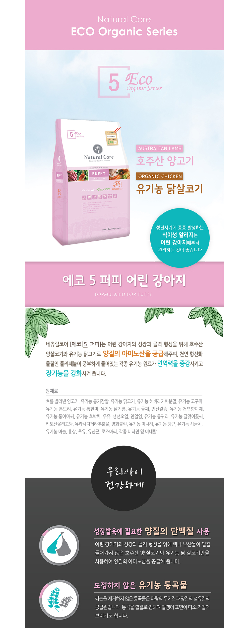 •  네츄럴코어 70% 유기농 에코 5 퍼피 작은알갱이 2.4kg