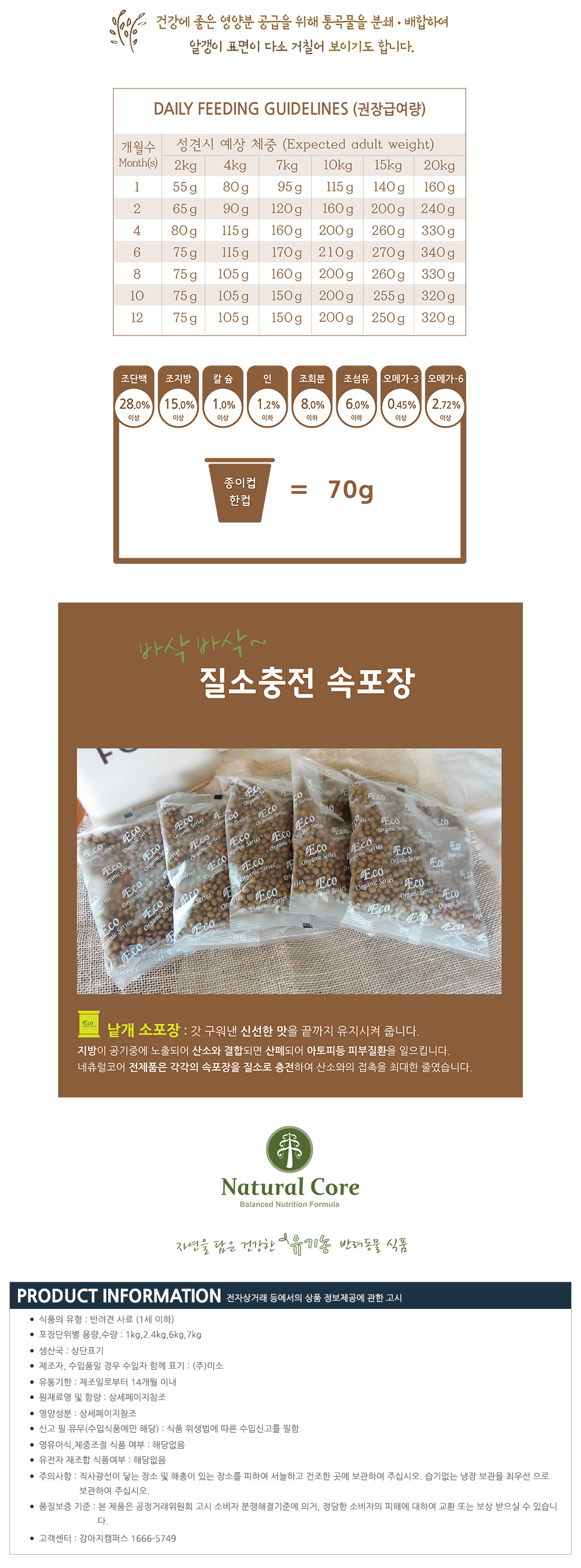 네츄럴코어 70% 유기농 에코 5 퍼피 작은알갱이 2.4kg 이미지 확대 보기