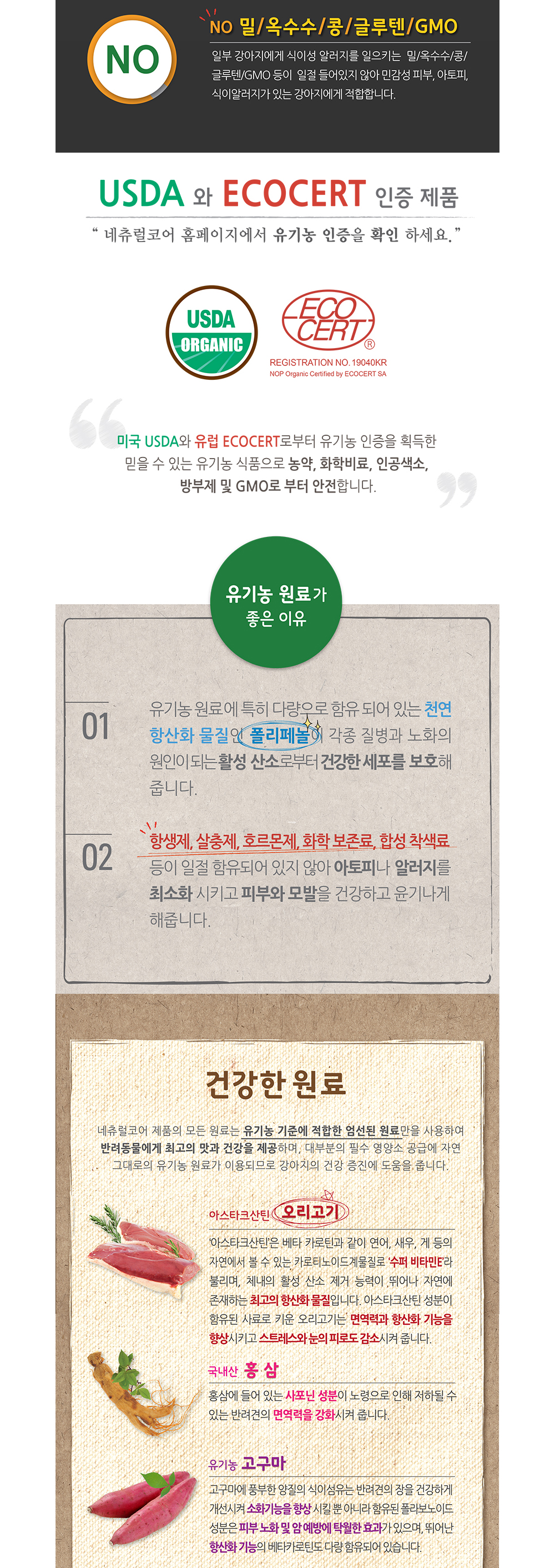 이미지 확대보기네츄럴코어 70% 유기농 에코 9A 시니어 오리&고구마2.4kg
